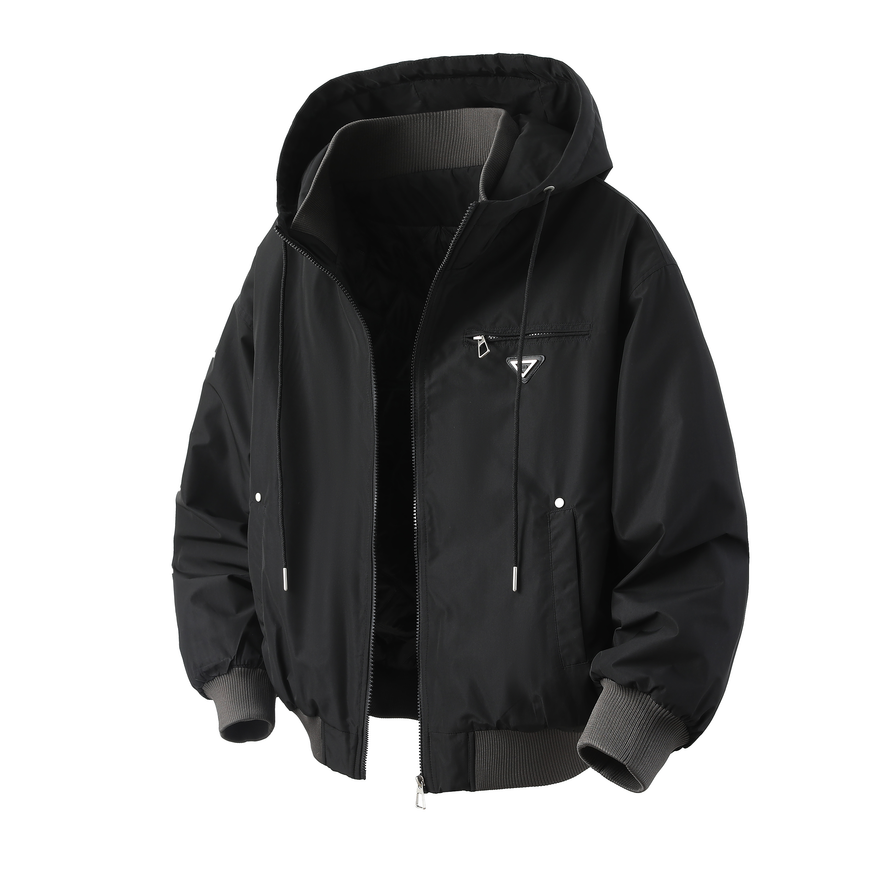 MY1805-P145 冬季新款 白底 潮牌纯色连帽加绒加厚棉衣 M 黑色