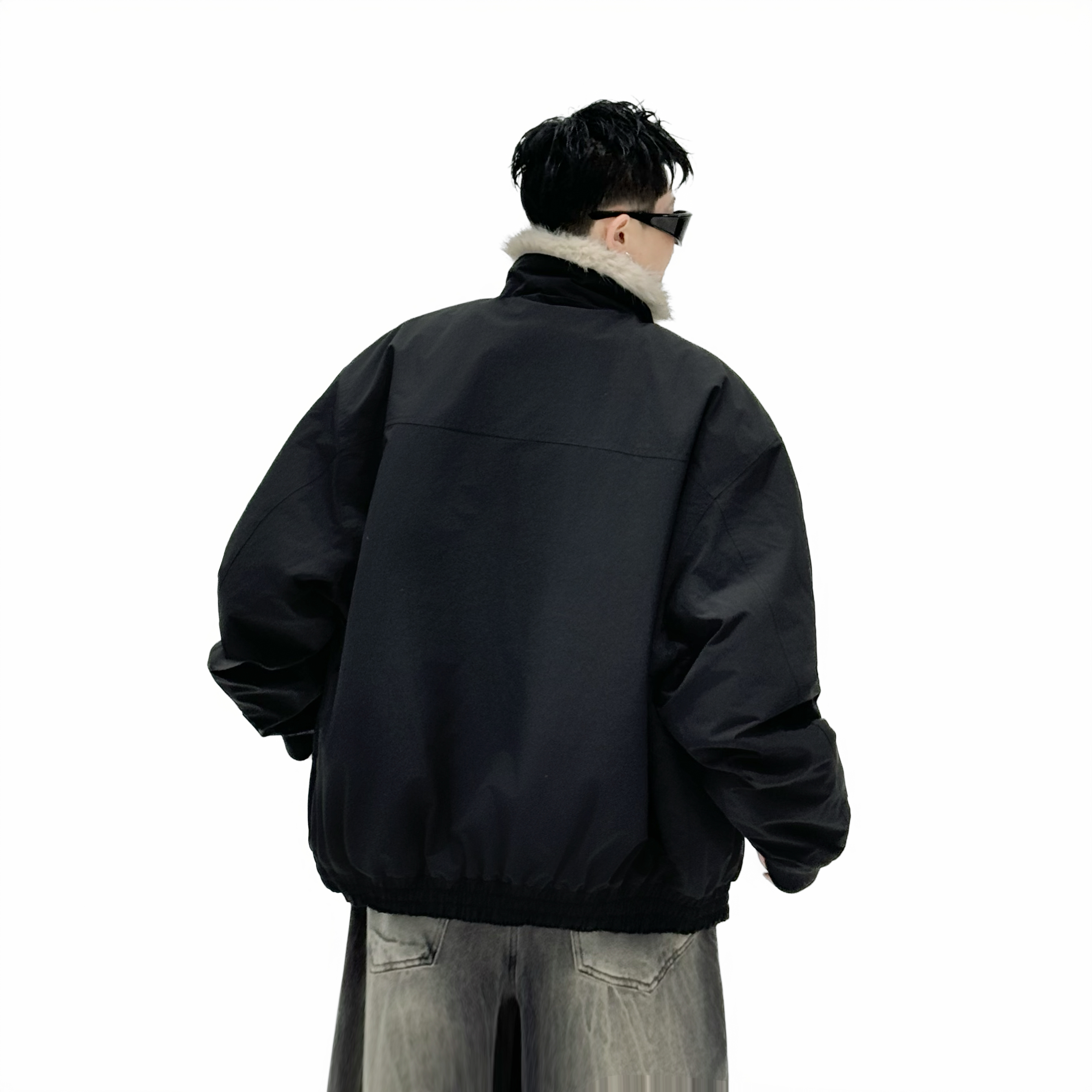 MY1805-P145 冬季新款 白底 潮牌纯色连帽加绒加厚棉衣 M 黑色