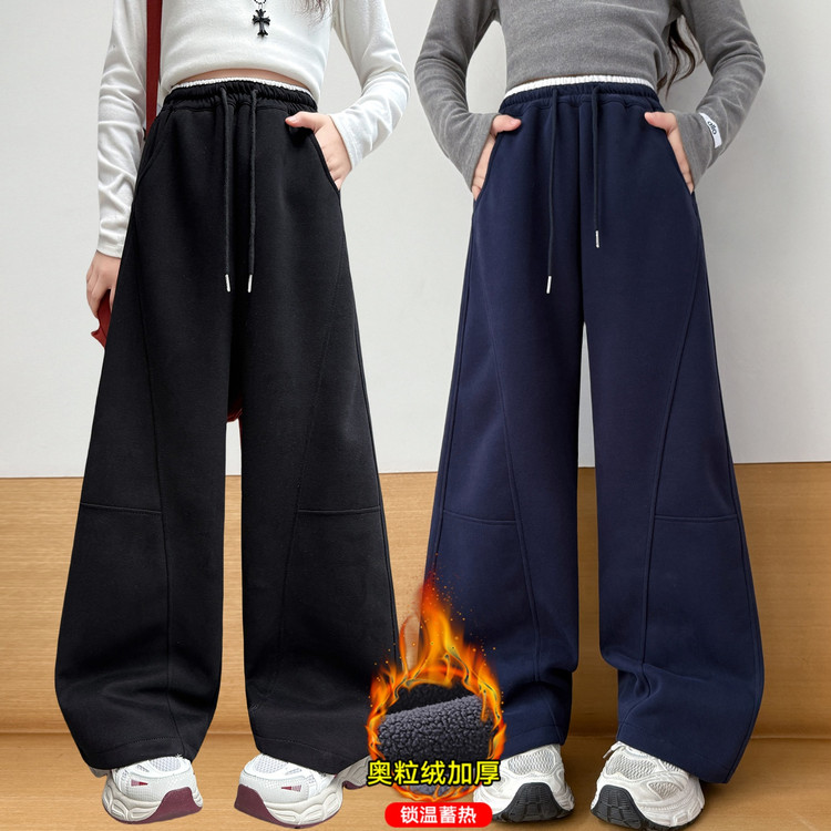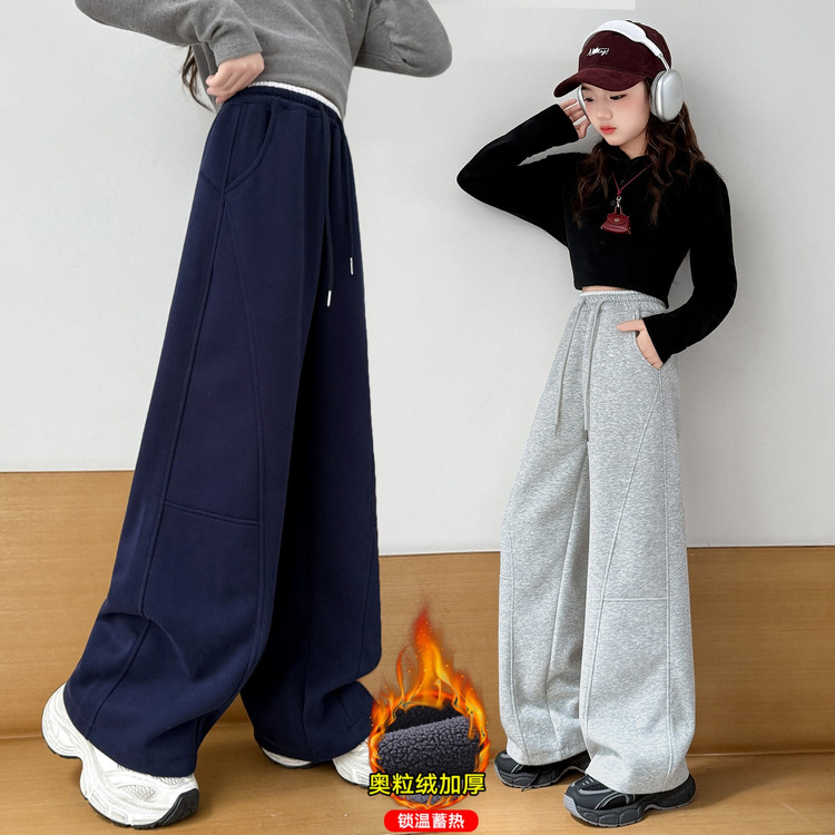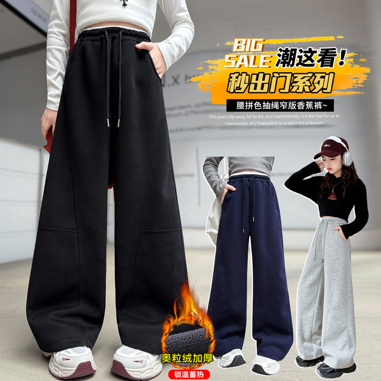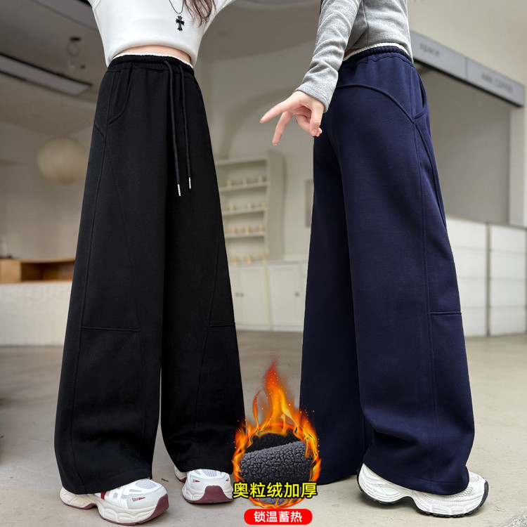 新款潮童A字加绒加厚阔腿裤