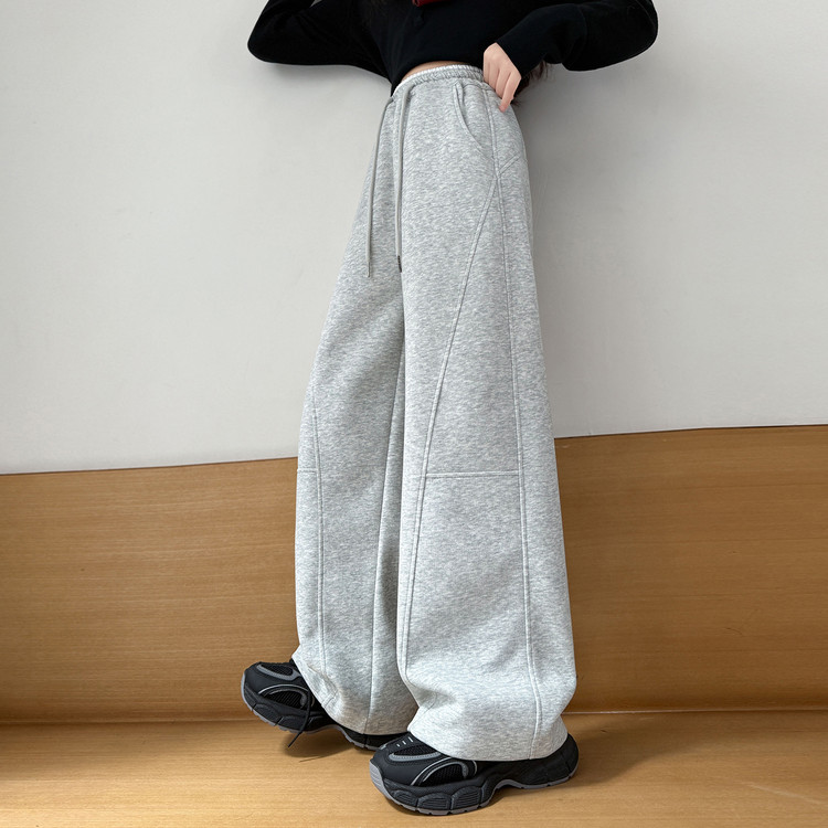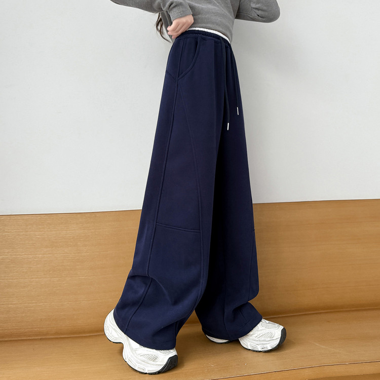 新款百搭直筒字母腰加绒加厚阔腿裤