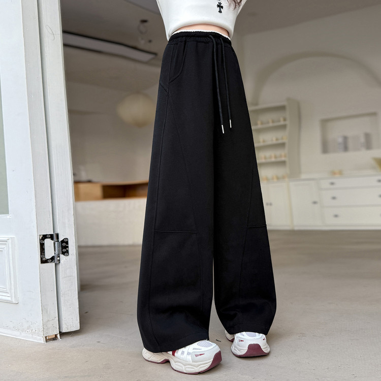 新款潮童高腰垂感盘扣阔腿裤 120 黑色