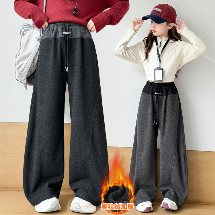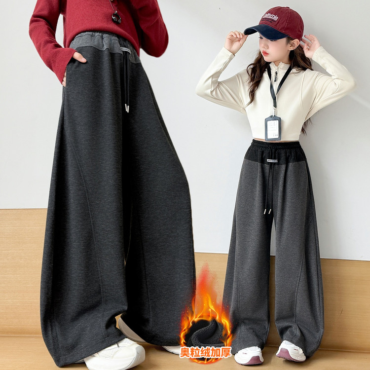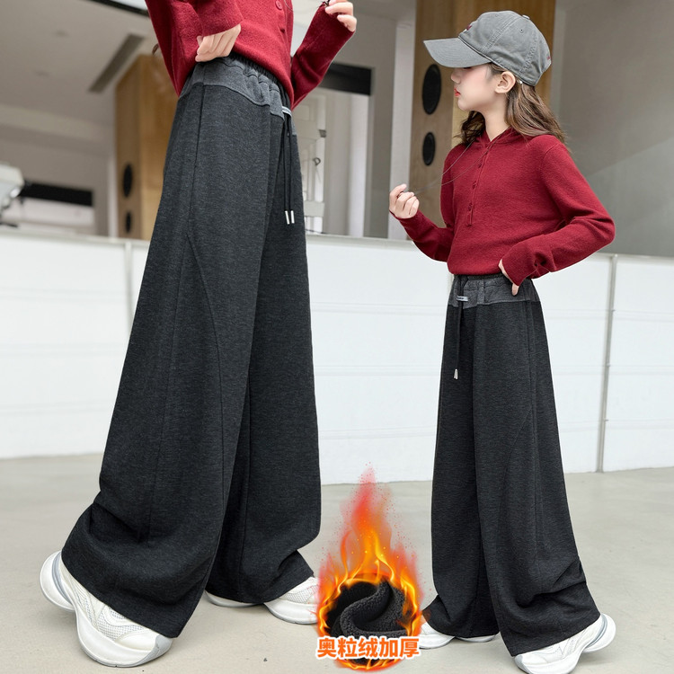 新款潮童A字加绒加厚阔腿裤