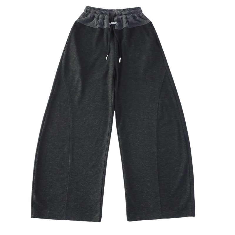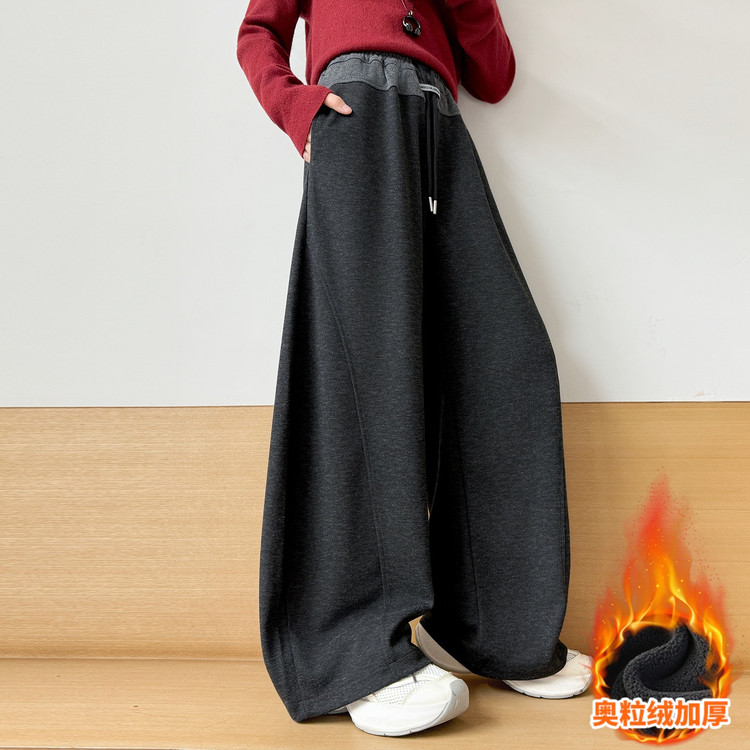 新款百搭直筒字母腰加绒加厚阔腿裤