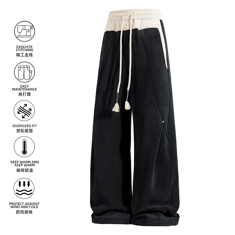 N2530 P52 重磅双面奥粒绒休闲裤男冬季加厚保暖运动裤卫裤 黑底 M【90-110斤】 水泥灰