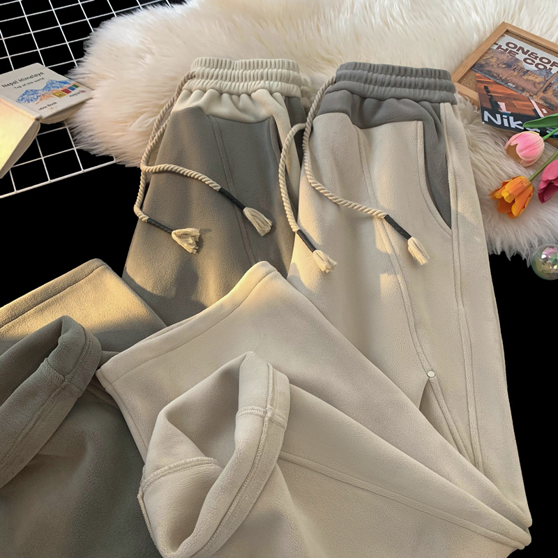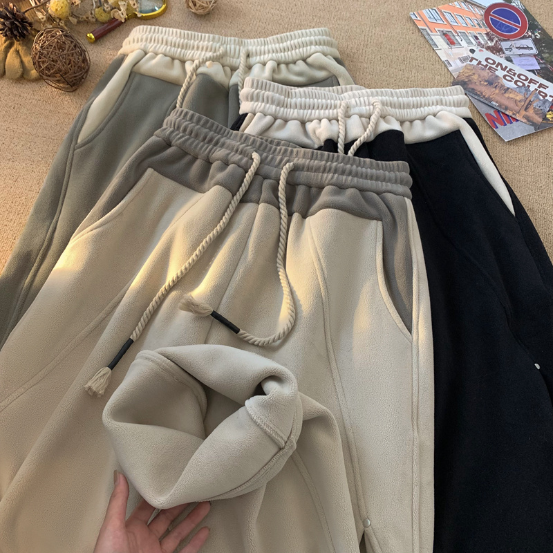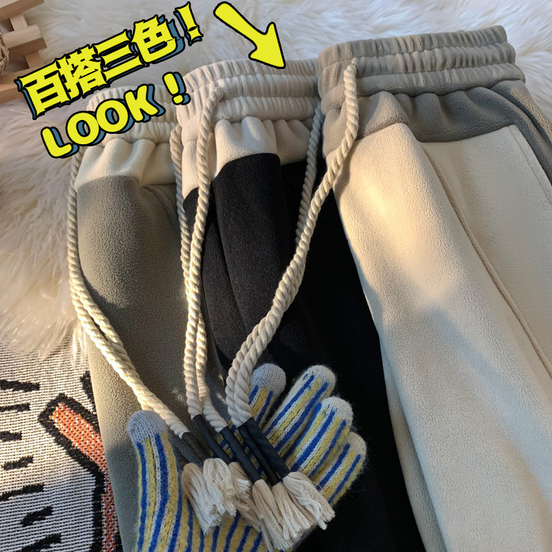 N555款奥粒绒复合羊羔绒束脚休闲裤简约时尚舒适百搭-YOA景 M 灰色