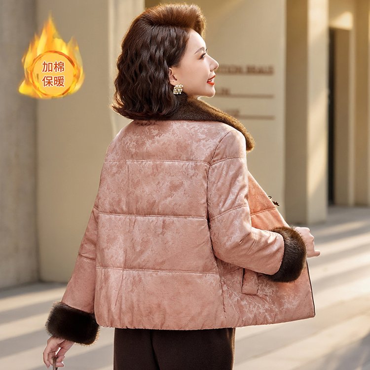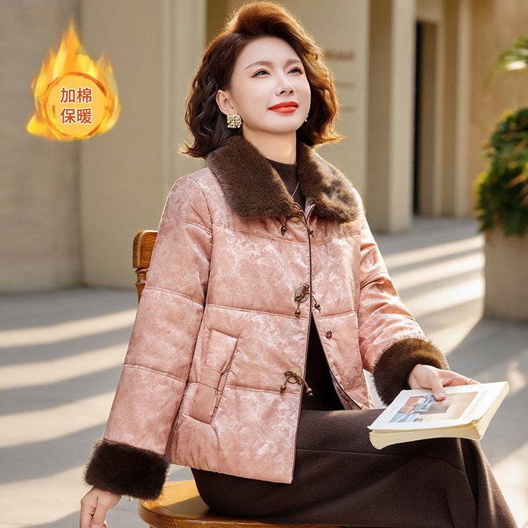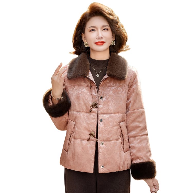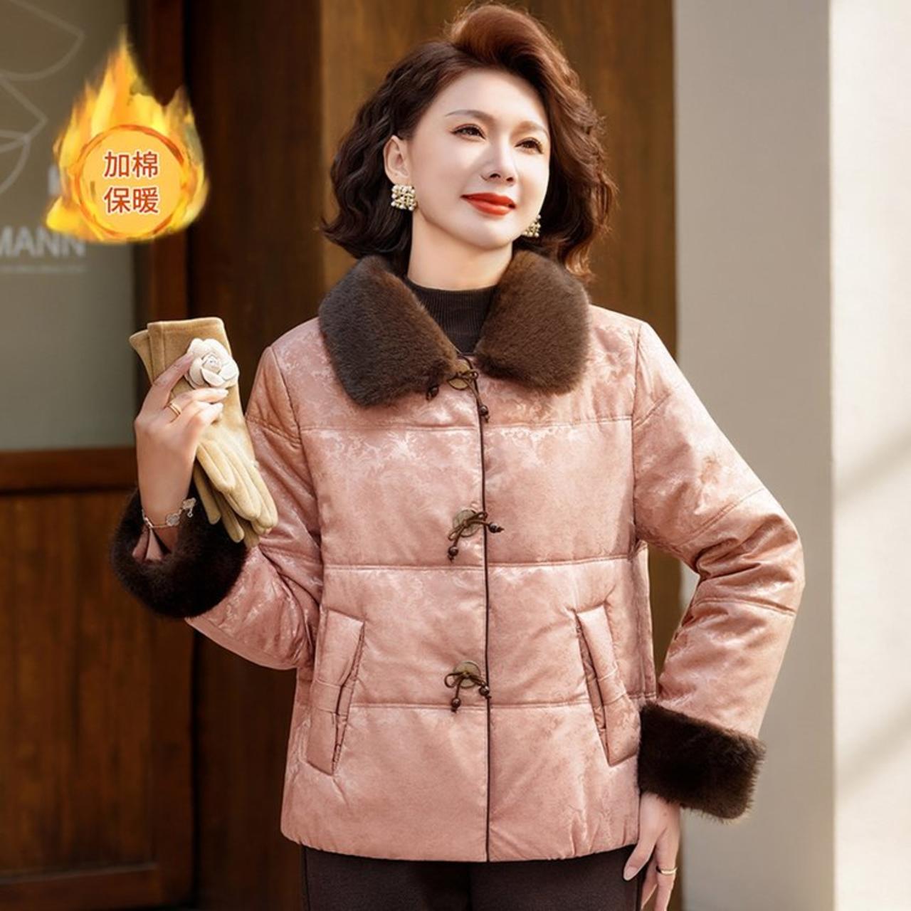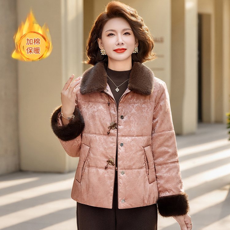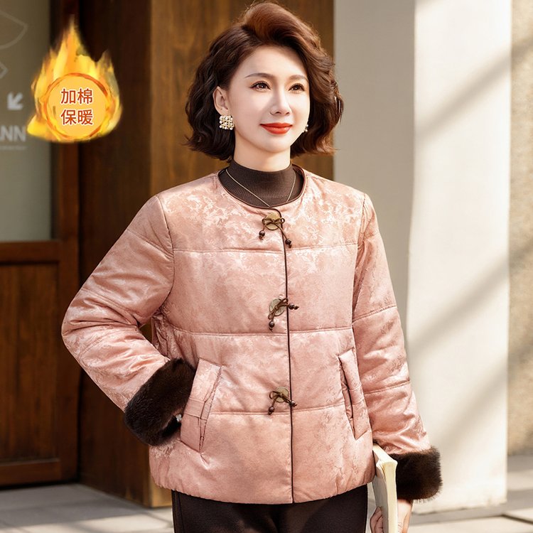 优雅中老年女士粉色加棉保暖外套冬季新款宽松大码设计舒适百搭袄子 XL 粉红色带领