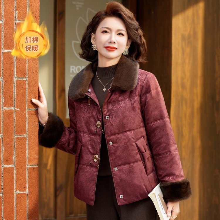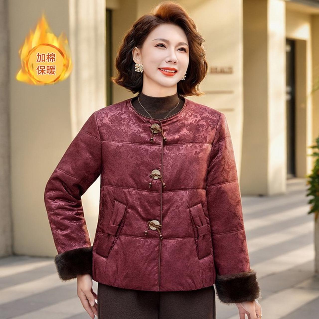 优雅中老年女士冬季保暖棉服外套大码显瘦设计紫色粉色两款选择舒适百搭经典时尚 XL 红色