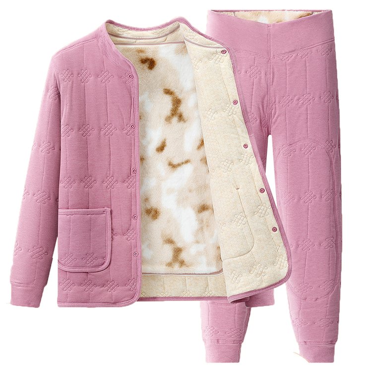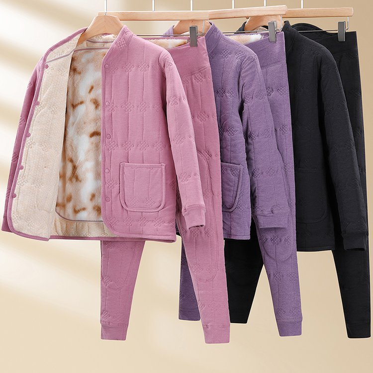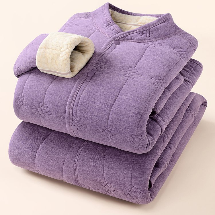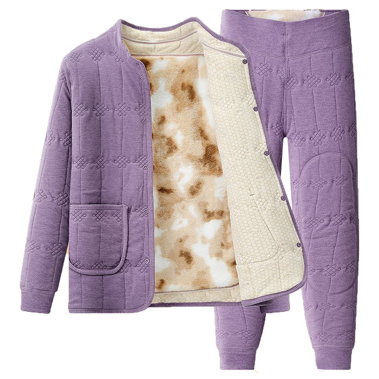 中老年女士冬季保暖套装棉衣外套与裤子加厚设计大码女装舒适居家服 2XL 紫色