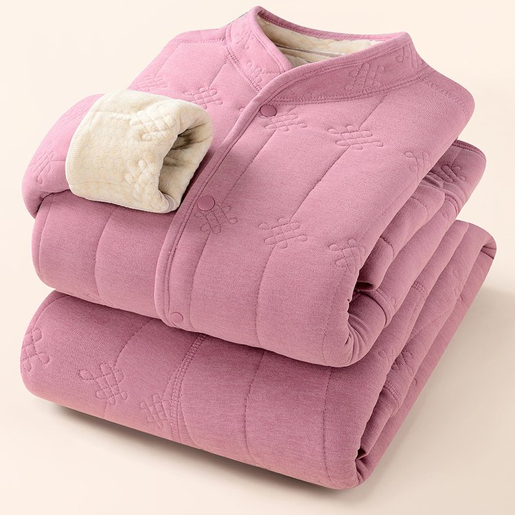 中老年女士套装加绒加厚内里复合拉绒亲肤柔软带大口袋四色可选420G面料 XL 浅紫(单件上衣)