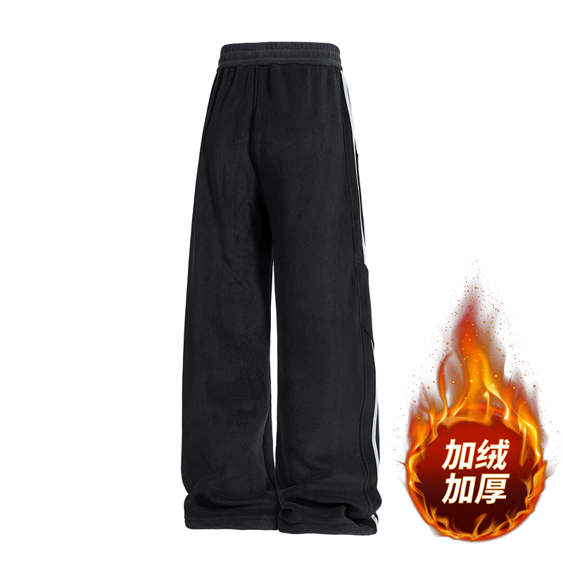 N2530 P52 重磅双面奥粒绒休闲裤男冬季加厚保暖运动裤卫裤 黑底 M【90-110斤】 水泥灰