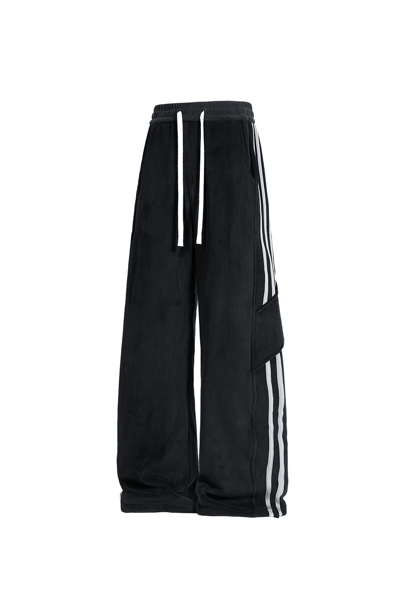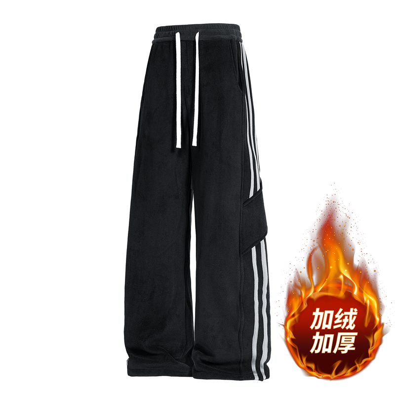 N2533 P32 重磅摇粒绒休闲裤男冬季学生条纹加绒加厚运动卫裤 3D M【90-110斤】 米白色
