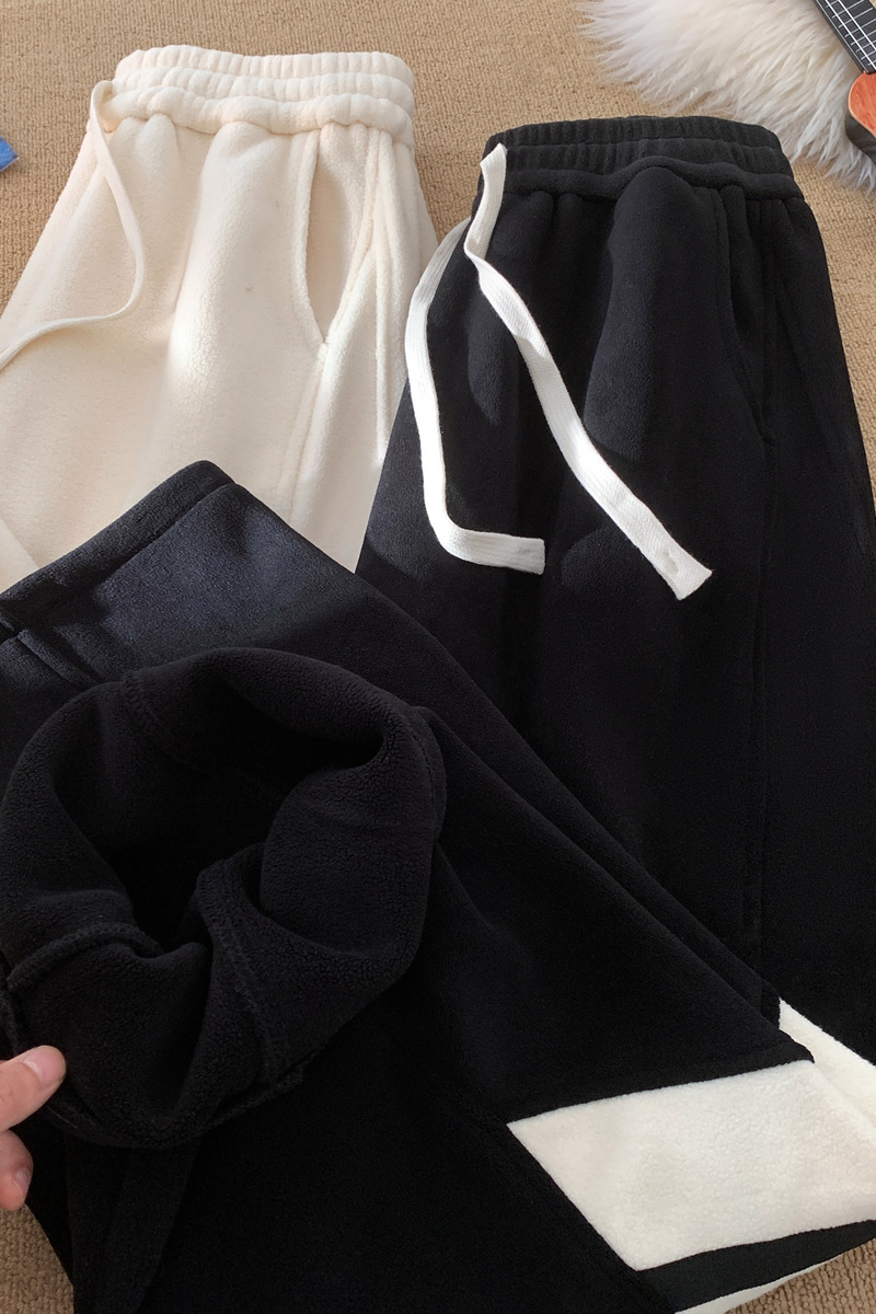 N2532 P32 重磅摇粒绒休闲裤男学生条纹加厚加绒运动卫裤冬 毛毯 M【90-110斤】 米白色