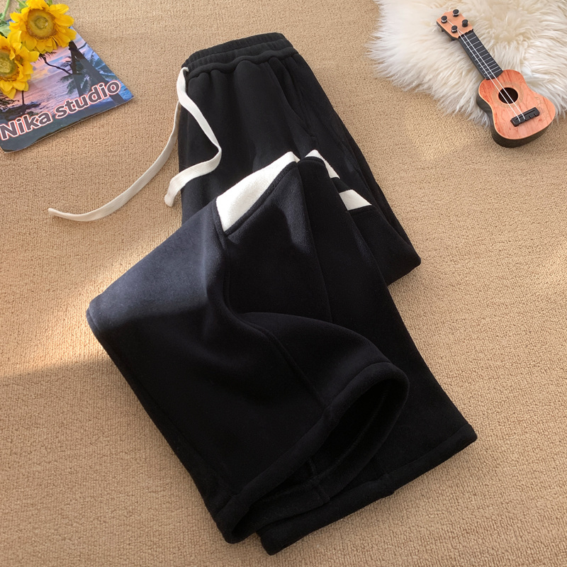 冬季新款石墨烯自发热羊羔绒平脚休闲裤白底平铺-1889 4XL 黑色