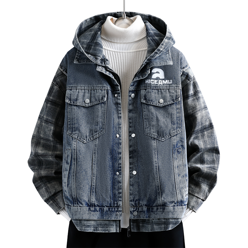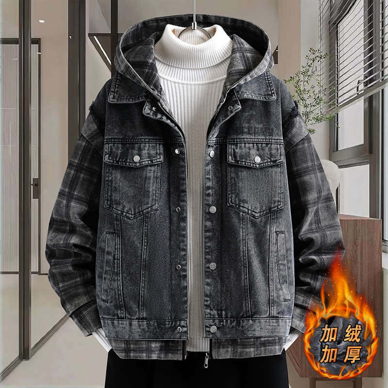 2025冬季新款连帽加绒加厚牛仔外套男青少年中学生保暖派克服夹克 M 649A款