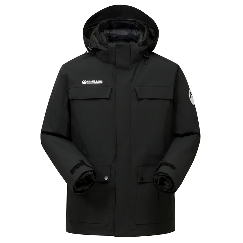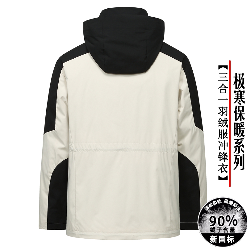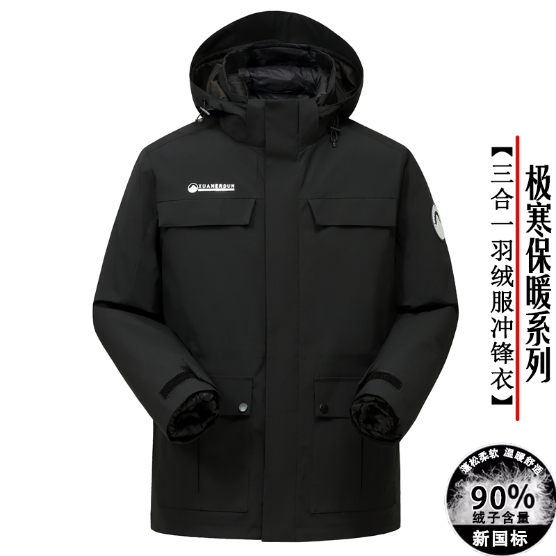 厚普A616冬新款时尚【新国标90绒三合一】保暖户外冲锋衣羽绒服男 S 黑米