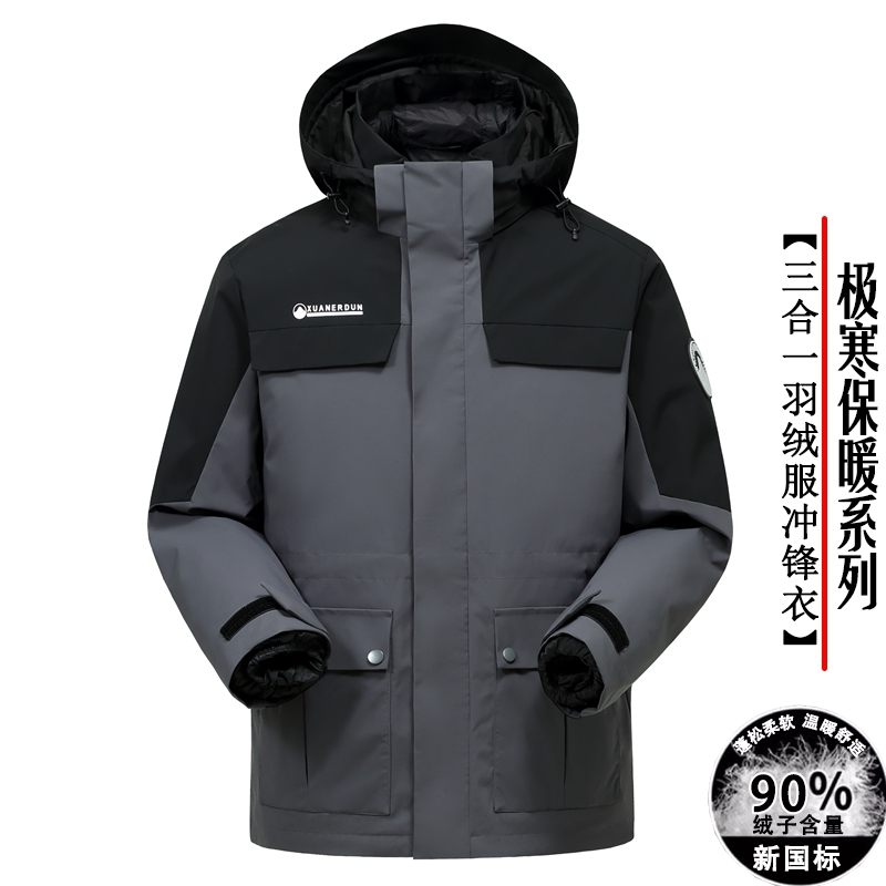 厚普A617冬新款时尚【新国标85绒三合一】保暖户外冲锋衣羽绒服男 S 黑米灰