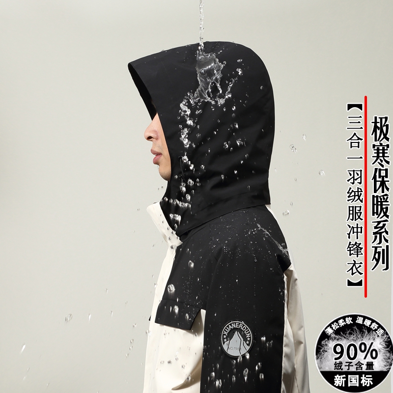 厚普A616冬新款时尚【新国标90绒三合一】户外冲锋衣羽绒服情侣 S 黑米