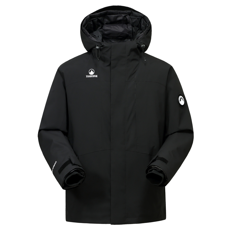 厚普A616冬新款时尚【新国标90绒三合一】保暖户外冲锋衣羽绒服男 S 黑米