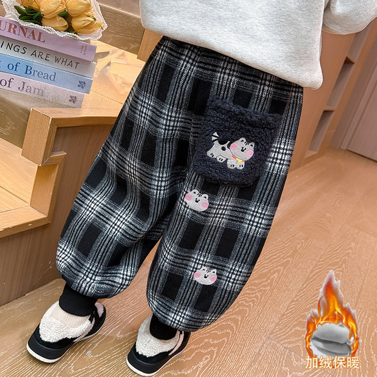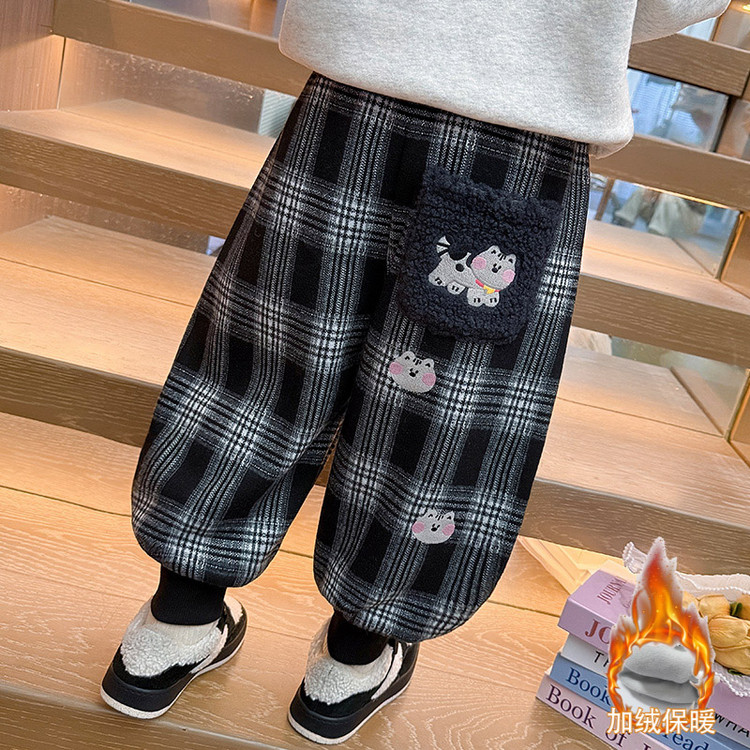女童冬季加绒保暖橡皮加绒休闲卫裤