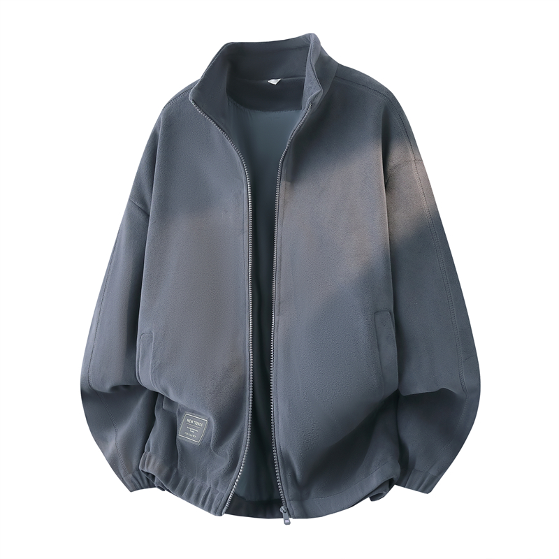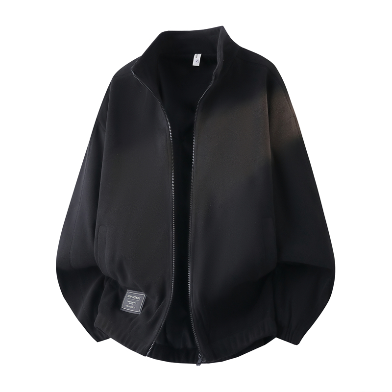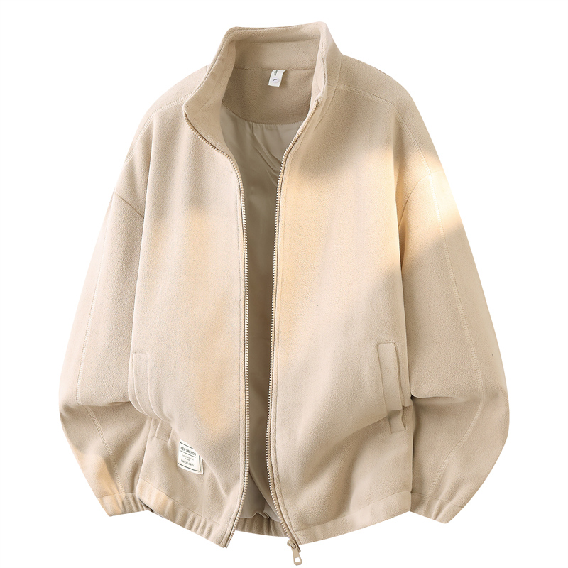JK2482秋冬季男士加厚潮牌休闲保暖摇粒绒立领夹克-挂拍图
