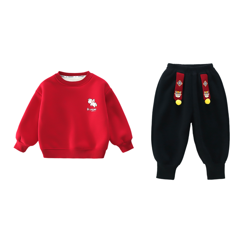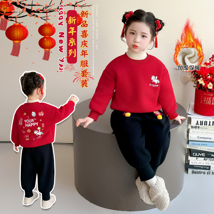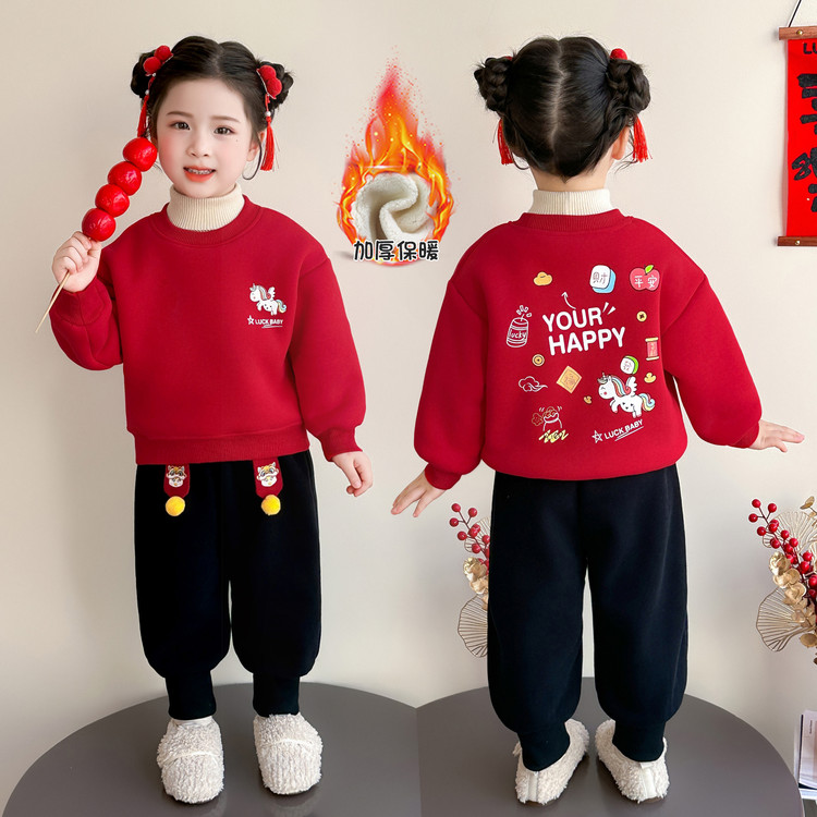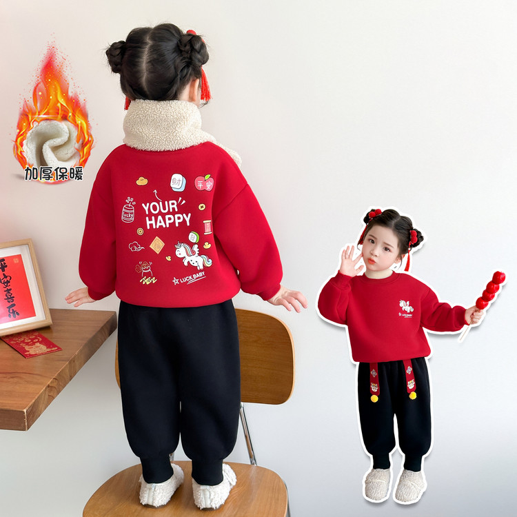 贝小贝&波浪贴布加绒套装 90cm 粉色