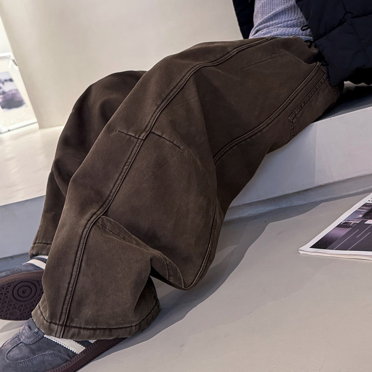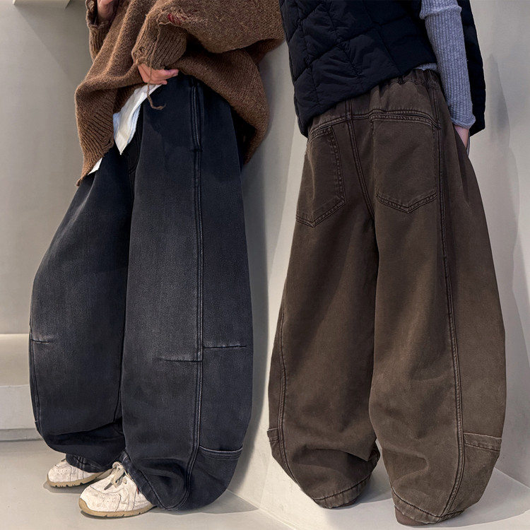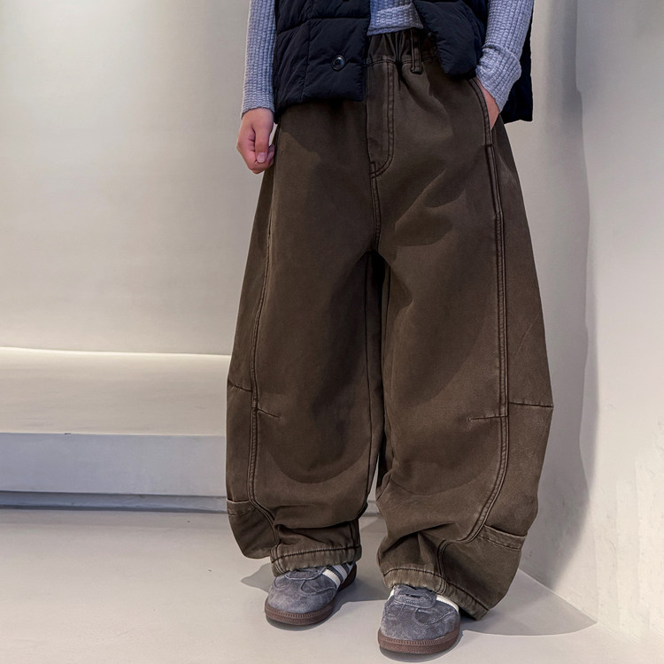 金多多&LBDK8949裤脚贴布包边加绒牛仔裤 120cm 深咖色