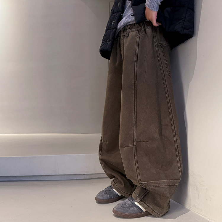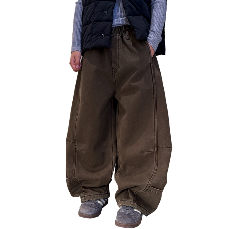 金多多&LBDK8949裤脚贴布包边加绒牛仔裤 120cm 深咖色